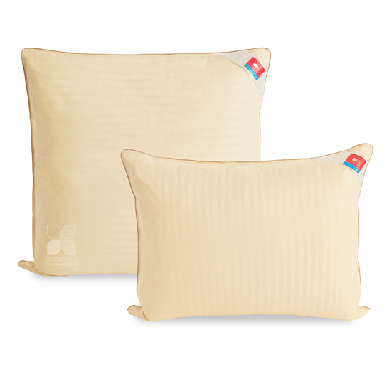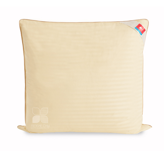а верхний чехол – из роскошной ткани сатин-жаккард с тиснением страйп цвета «шампань», которая придает подушке особую гладкость