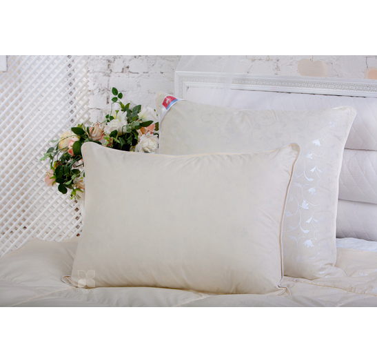 Чехол подушки выполнен из тика, 100% хлопок. Наполнена она уникальной смесью - натуральным пухом второй категории (80%) и синтетическим полиэфирным волокном (20%). Чехол двусторонний - с одной стороны однотонный цвета шампань, а с другой декорирован рисунком.