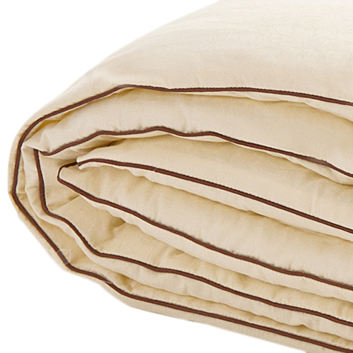 Теплое одеяло сшито из высококачественного сатина жаккарда, 100% хлопок. Сливочный цвет чехла и коричневый атласный кант придают изделию роскошный внешний вид.