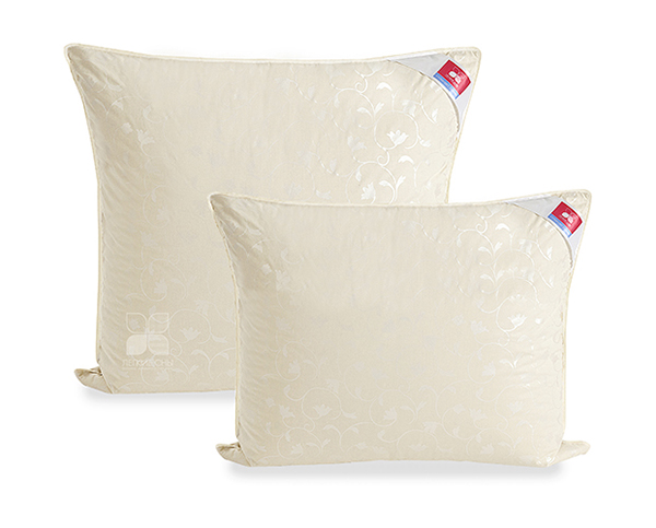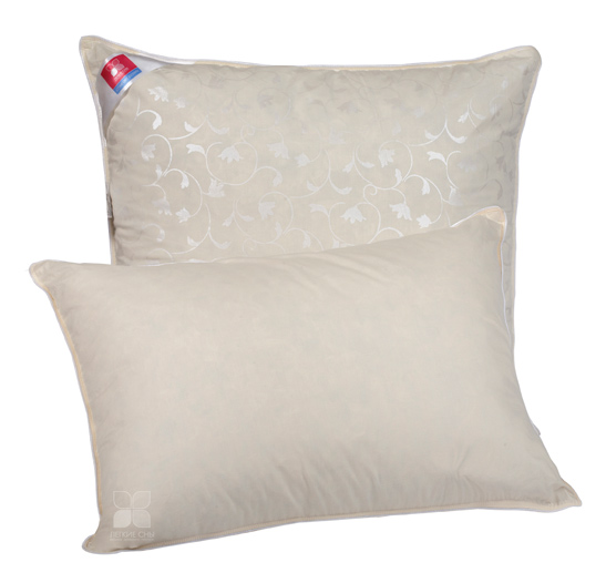 Чехол подушки выполнен из тика, 100% хлопок. Наполнена она уникальной смесью - натуральным пухом второй категории (80%) и синтетическим полиэфирным волокном (20%). Чехол двусторонний - с одной стороны однотонный цвета шампань, а с другой декорирован рисунком.